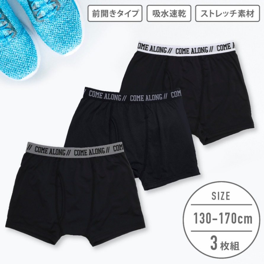 【男の子】キッズジュニア ボクサーブリーフ 3枚組 無地/前開き 130~170cm【吸水速乾/ストレッチ】
