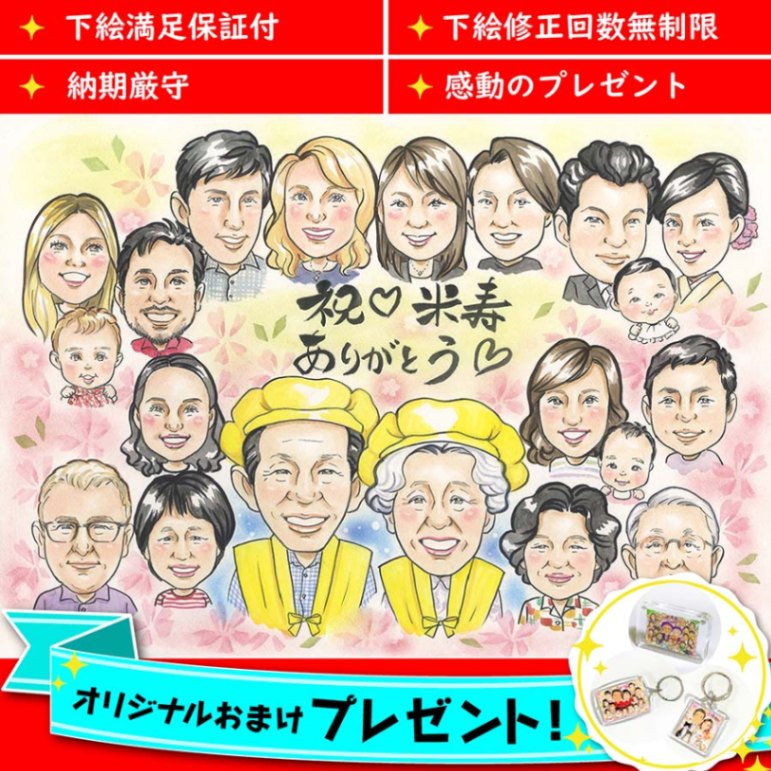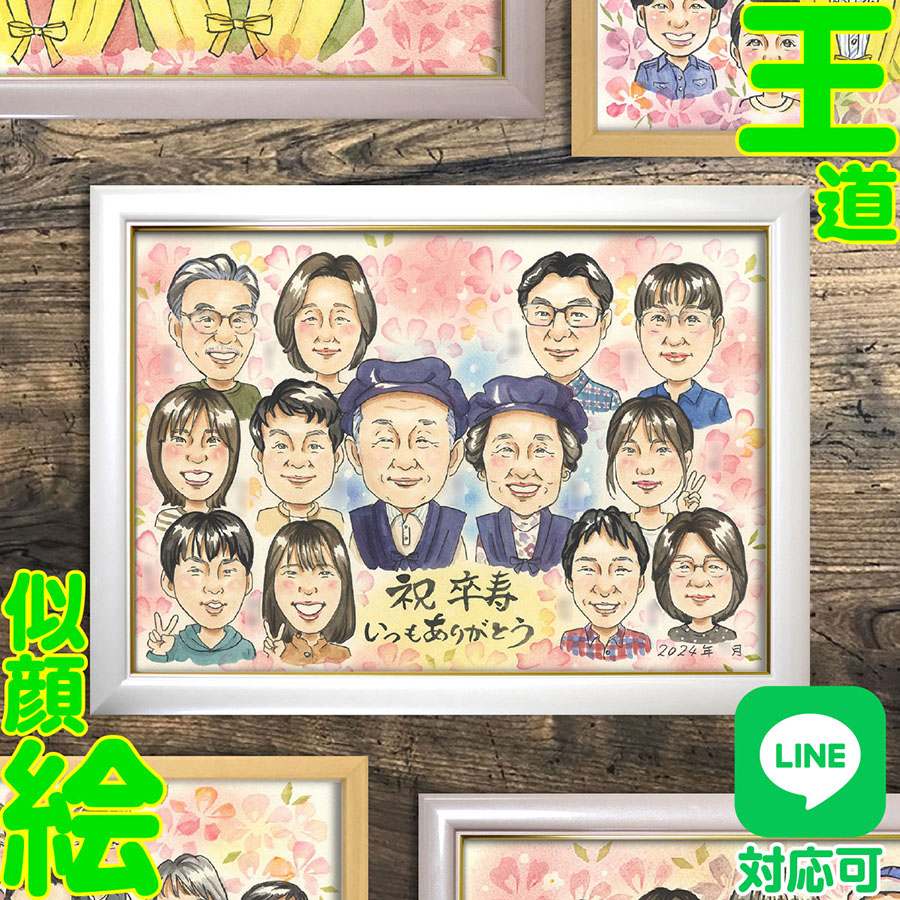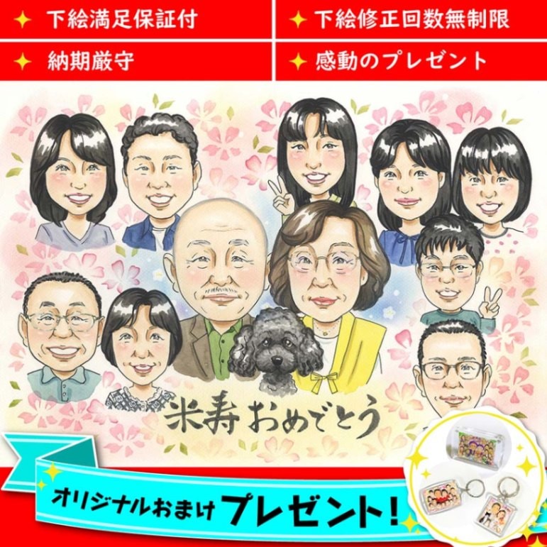おまけ付き似顔絵 家族の思い出を一枚の似顔絵に 還暦(60歳) 古希(70歳) 喜寿(77歳) 傘寿(80歳) 米寿(88歳) 卒...