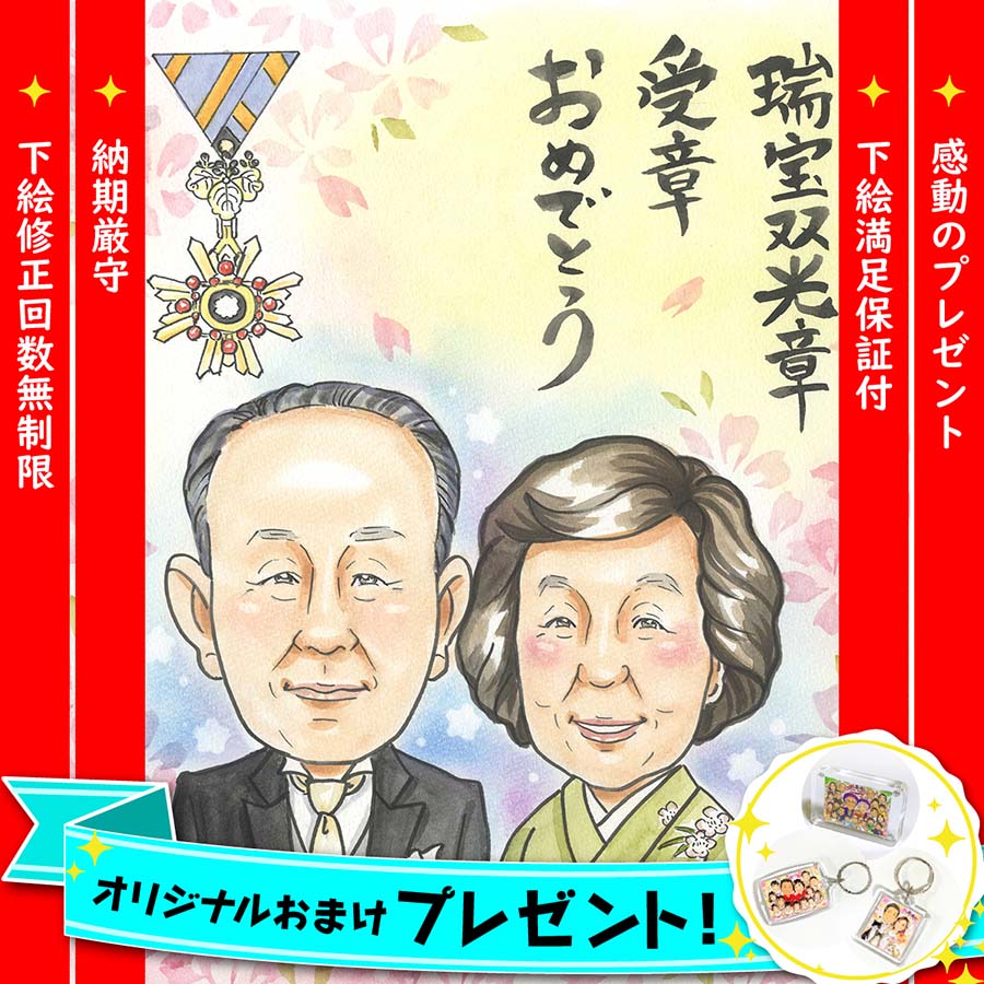 受賞記念の似顔絵 プレゼント お祝い 還暦 古希 喜寿 傘寿 米寿 卒寿 長寿 結婚記念日 結婚10周年 結婚30周年 結婚50周...