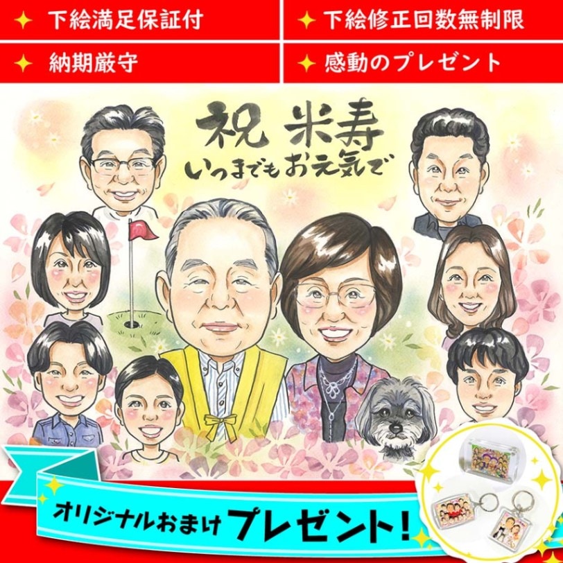【特典あり】米寿おめでとう似顔絵 プレゼント お祝い 還暦 古希 喜寿 傘寿 米寿 卒寿 長寿 結婚記念日 結婚10周年 結婚30...