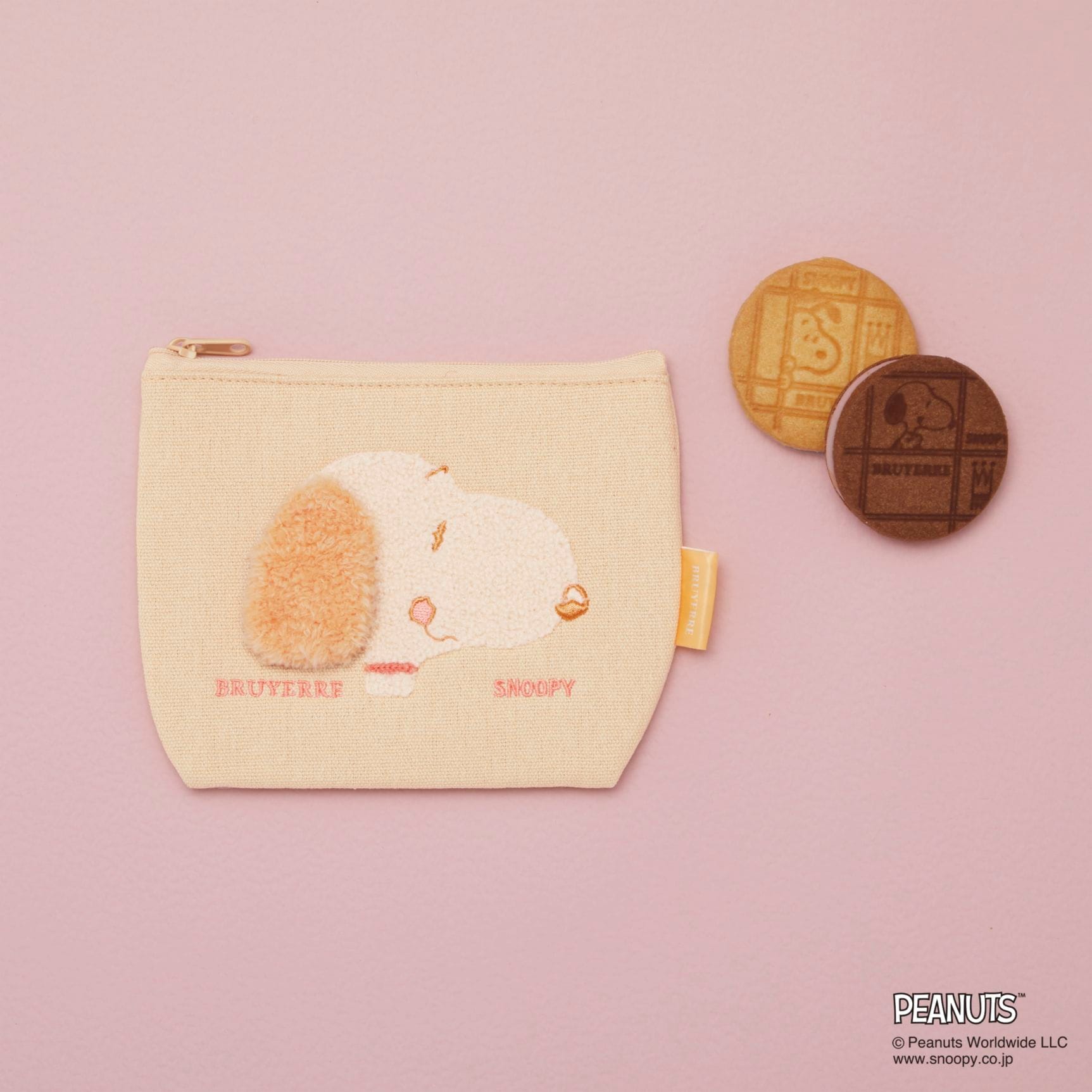 【2026 バレンタイン】スヌーピー meets ブリュイエール もこもこ刺繍ポーチ(オフホワイト)