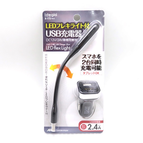 アークス:車載用携帯充電器 スマートフォン タブレット USB LEDフレキライ付 DC12V DC24V/X-173