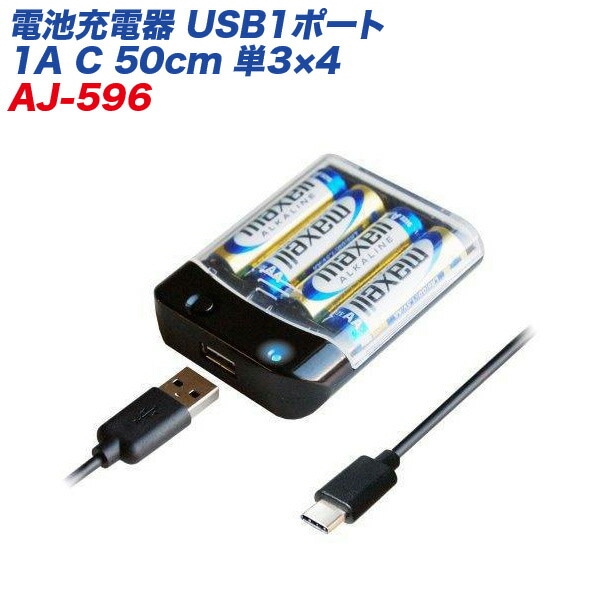 カシムラ 電池充電器 USB1ポート1A C 50cm 単3×4 スマホ/ケータイ 通電確認LED付 単三乾電池 AJ-596