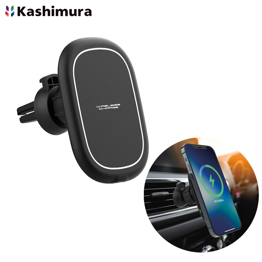 カシムラ マグネットワイヤレス充電器 エアコン取付 iPhone12/13 Qi認証 マグネット対応 USB-A Type-C ス...