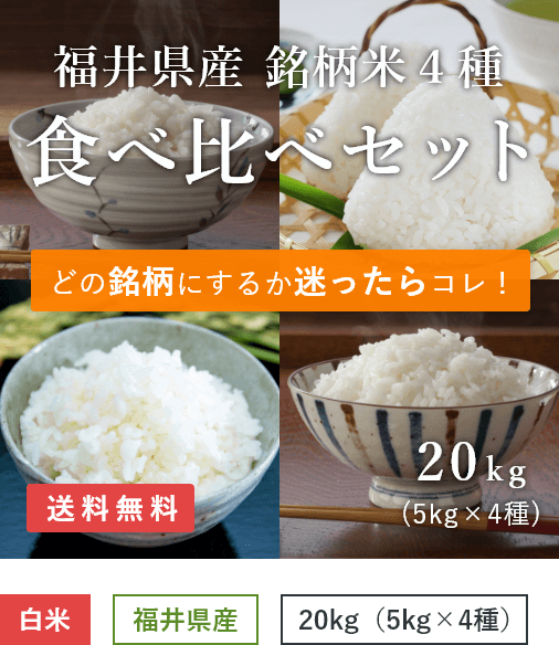 福井県産銘柄米4品種食べ比べセット(コシヒカリ・あきさかり・ハナエチゼン・ミルキークィーン) 白米 20kg(5kg×4種類)