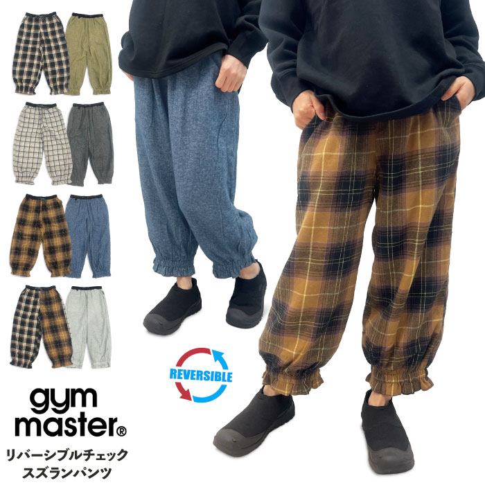 gym master ジムマスター レディース リバーシブルチェックスズランパンツ フランネル 無地 ワイドパンツ ゆったり イー...