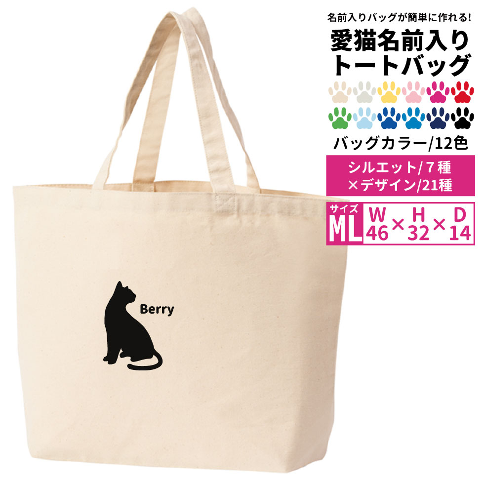トートバッグ 愛猫 名前入り MLサイズ 名入れ ペット オリジナル イラスト 猫友 かわいい 可愛い ペットグッズ ペット用品 ...