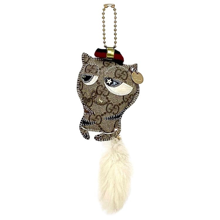 グッチ チャーム ec-22735 ベージュ シェリー ガットリシリーズ PVC ファー 中古 GUCCI 猫 GG アクセサリー...