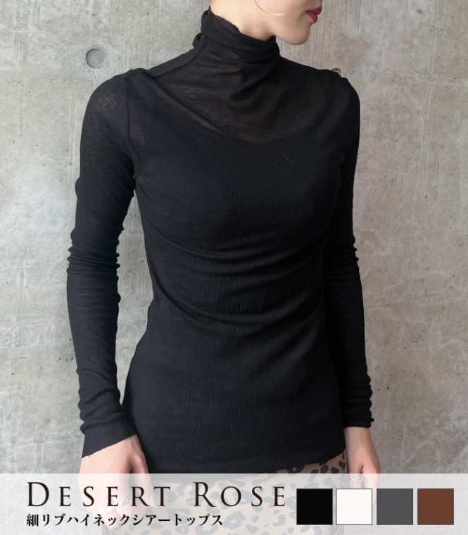 【SALE】【DESERT ROSE】細リブハイネックシアートップス▼BDCS-45