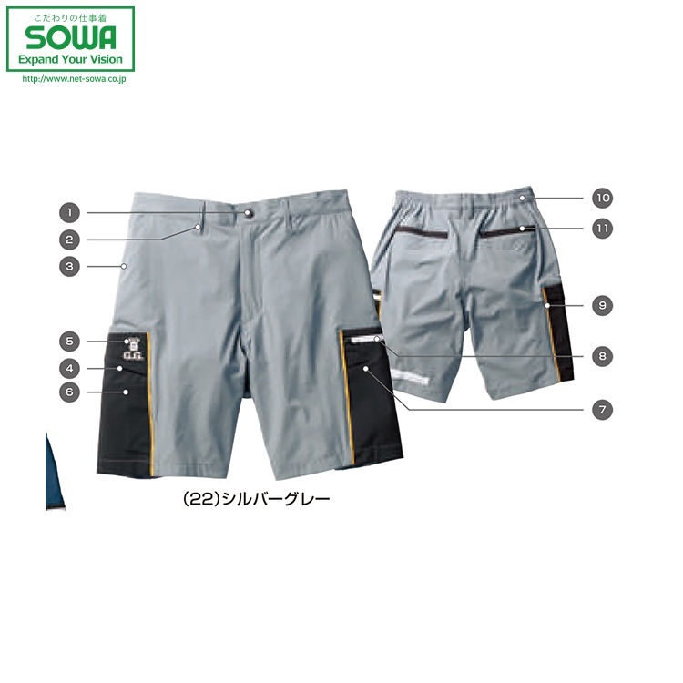 SOWA 0388-07 ハーフパンツ S M L LL 3L 4L 【 作業着 作業服 桑和 ソーワ 小さめサイズ 普通サイズ ...