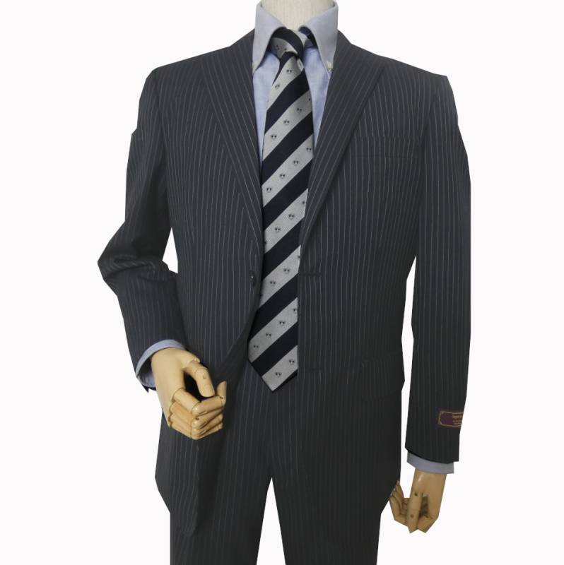 FINTES フィンテス 社製生地使用 秋冬 ネイビーストライプ 2つ釦スリムスーツ