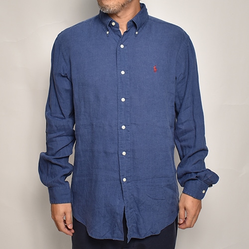 ・Polo Ralph Lauren/L/S Linen Shirt(ラルフローレン リネンシャツ)ネイビー/サイズM [z-66...