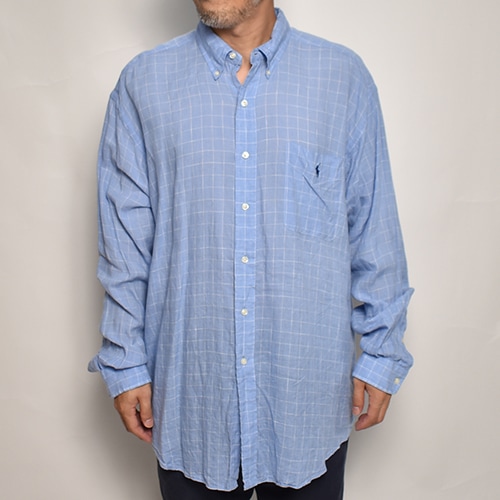 ・Polo Ralph Lauren/L/S Linen Shirt(ラルフローレン リネンシャツ)ブルー×ホワイト/サイズXL ...