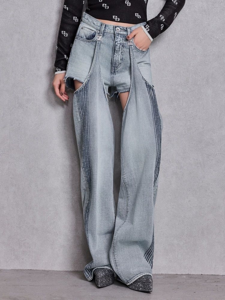 GYDA ハイウエストSymmetry GYDA 2WAYラインプリーツデニムパンツ 0726224026