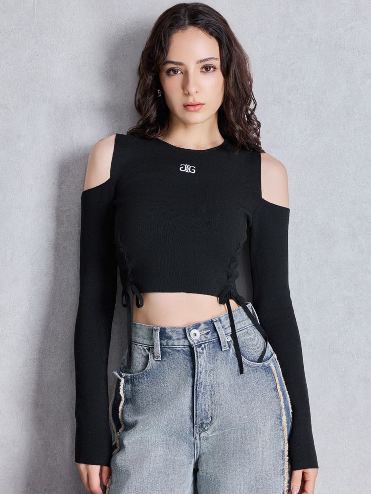 GYDA Symmetry GYDAフロントレースアップニットトップス 0725526344