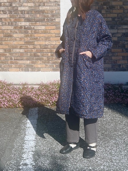 SALE maison de SOIL/メゾンドソイル PADDED SILK PRINT C-NECK FRONT BUTTO...