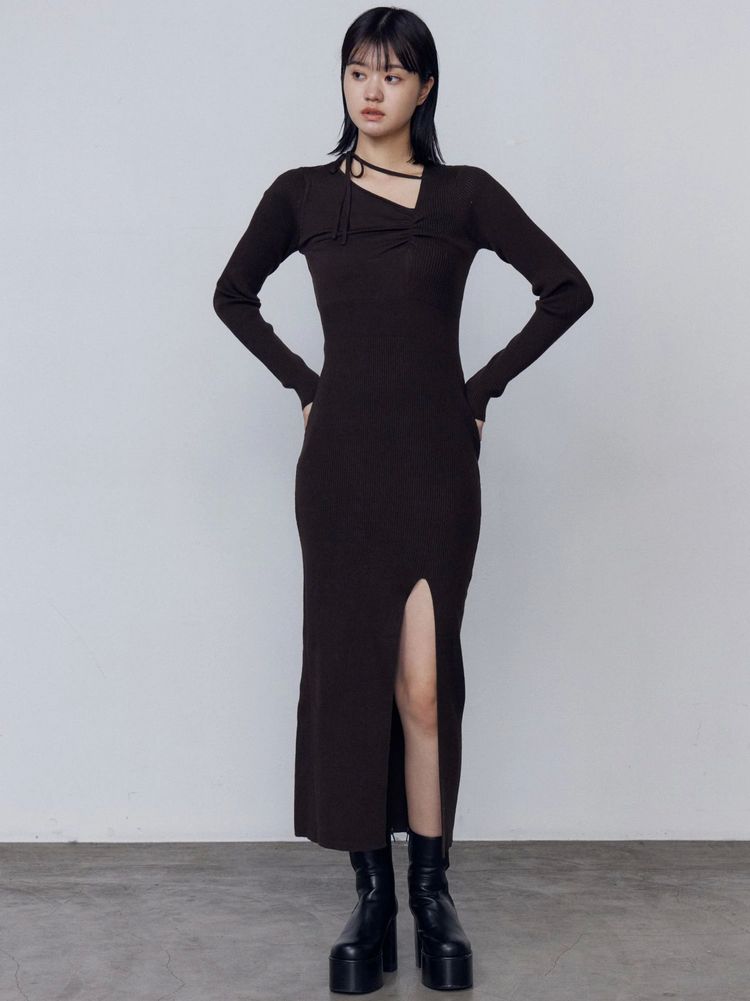 【SALE】EMODA チョーカーギャザーフィットニットワンピース 0425503506
