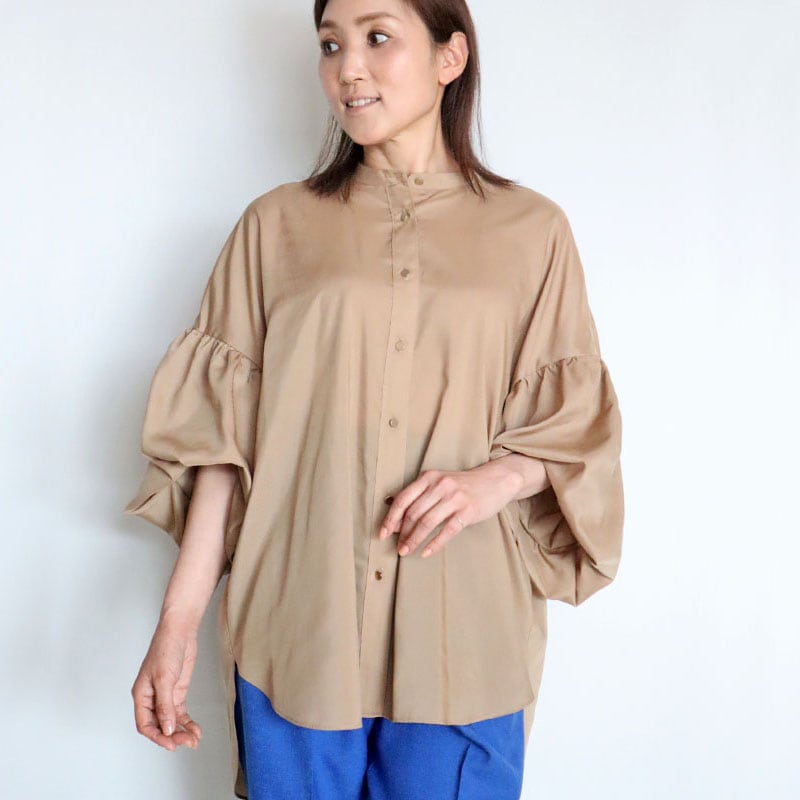 バックリボンシアーAラインブラウス/BLUE FRONCE 8583