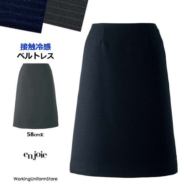 アンジョア 58cm丈春夏Aラインスカート 56605 シャドーボーダー 事務服 接触冷感 ベルトレス