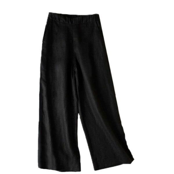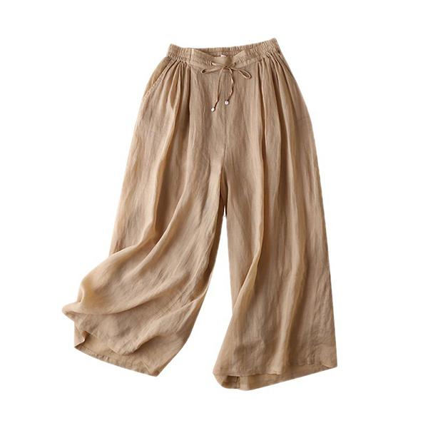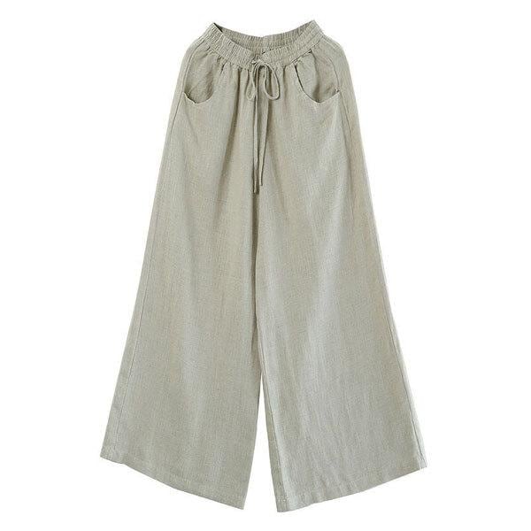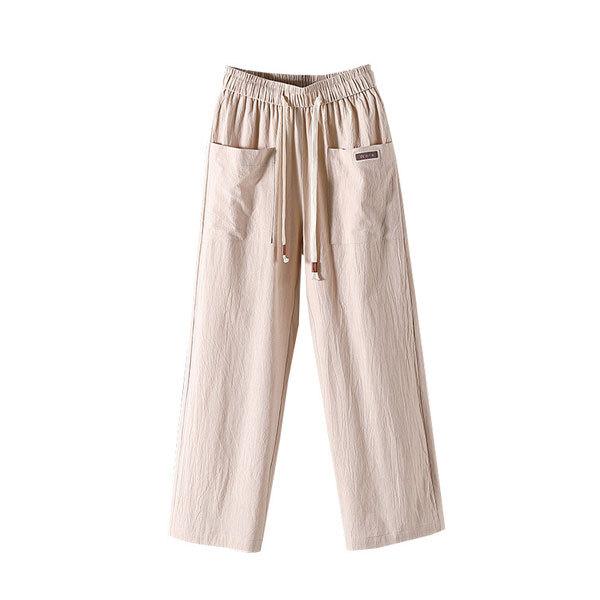 レディース ワイドレッグパンツ クロップドパンツ 九分丈パンツ ロングパンツ サイドポケット付き ウエストゴム 薄手 綿麻混 リネ...