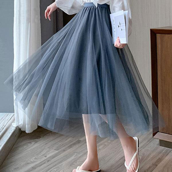 レディース チュールスカート マキシ丈 ウエストゴム Aライン スカート ロングスカート マキシスカート かわいい 春 夏