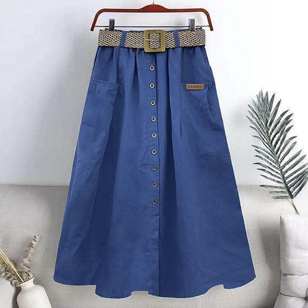 レディース ミドル丈 Aラインスカート フロント ベルト付き フレアスカート ボタン サイドポケット付き シルエット カジュアル ...