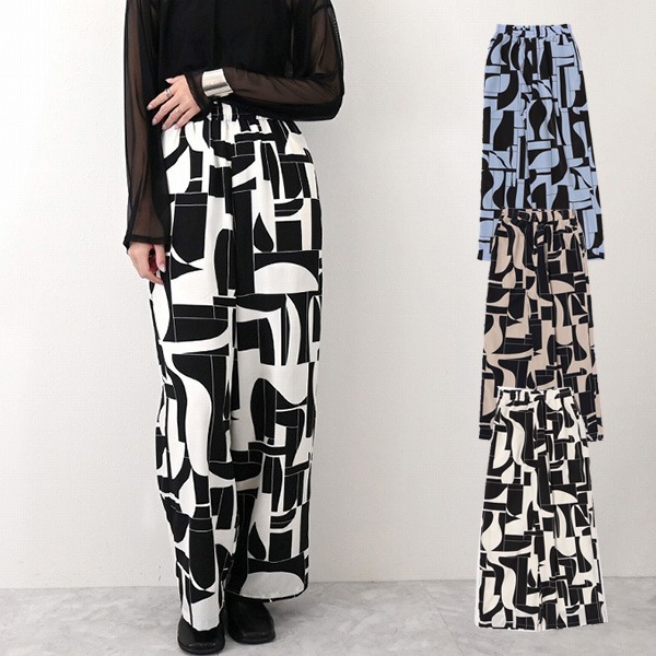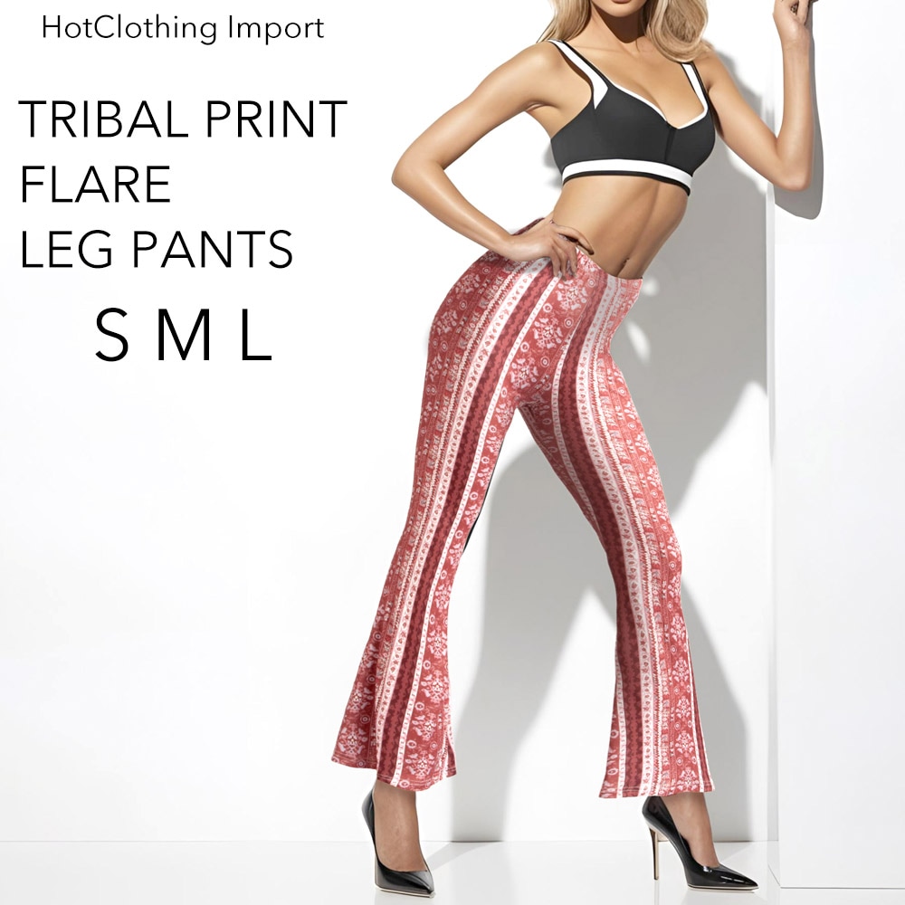 [HotClothing Import] トライバル柄 ハイウエスト ベルボトム パンツ プリント ピーチスキン ビンテージ レデ...
