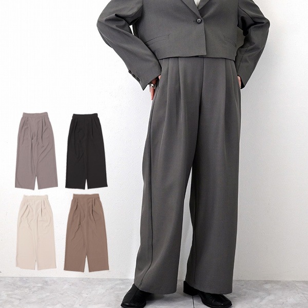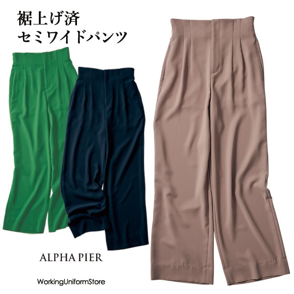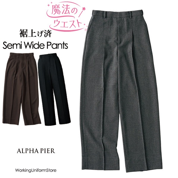 アルファピア事務服 セミワイドパンツ AR5020 シャークツイード「魔法のウエスト」