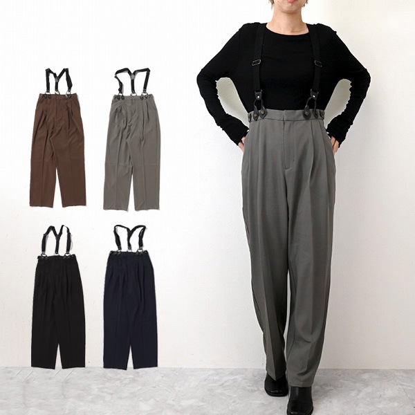 パンツ レディース ワイドパンツ サスペンダー付き ハイウエスト ツイルパンツ サロペット オーバーオール 3way ボトムス 大...