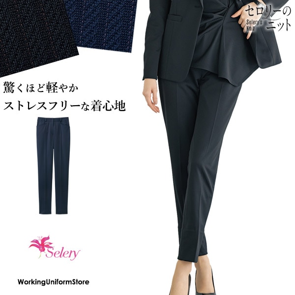 事務服 テーパードパンツ S-51700 51701 フローライトニットストライプ セロリー仕事服
