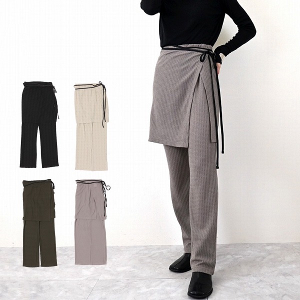シアーカットソー&ワッフルラップスカート付きレギンス