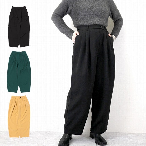 テーパードパンツ レディース メンズ 綿 コットン ストレスフリーな毎日パンツ。タック入りゆったりテーパードパンツ アラジンパンツ...