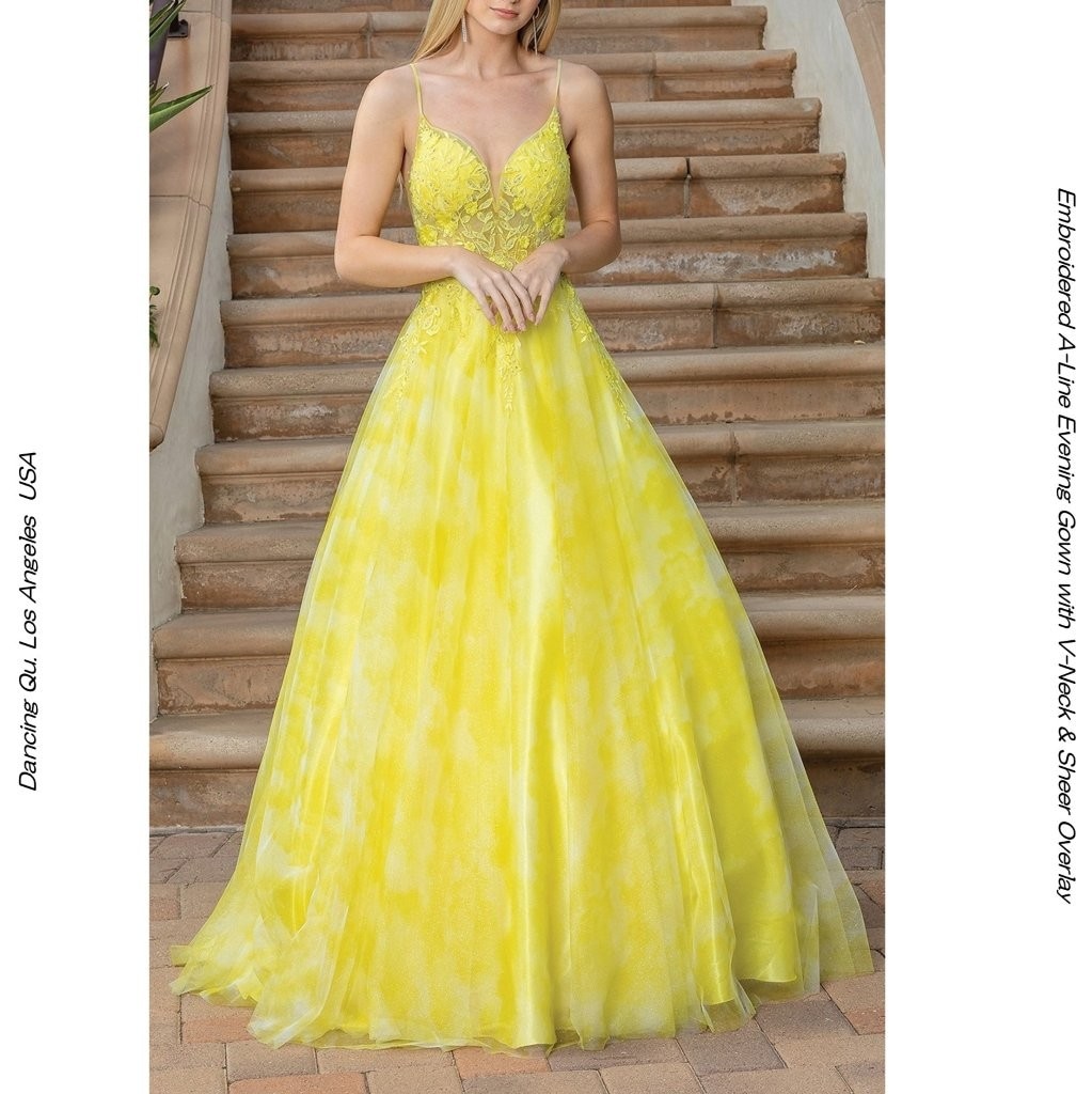 声楽ドレス ピアノ演奏 VネックAライン ノースリーブドレス 黄色メッシュ 淡紫 ビジュエンブロイダリー 3Dアップリケ 演奏会用...