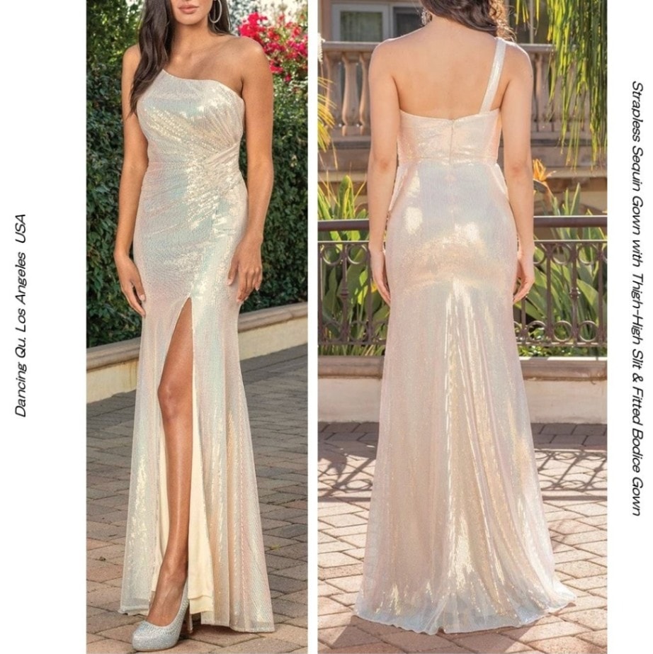 オーロラスパンコールメッシュ マーメイドドレス ワンショルダー シャンパンゴールド プロムドレス 演奏会用ドレス 発表会ドレス 演...