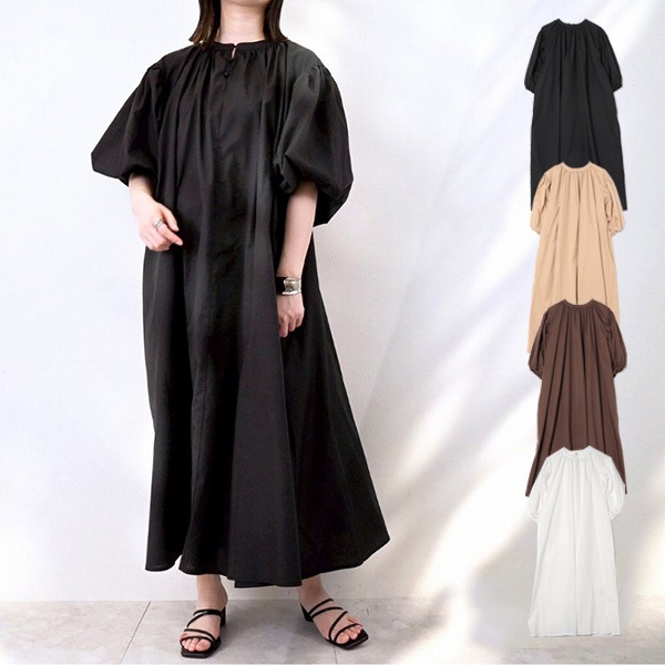 大きいサイズ レディース プリーツワンピース シャツワンピ 長袖 ロング ドロスト 無地 秋 春 (448291)