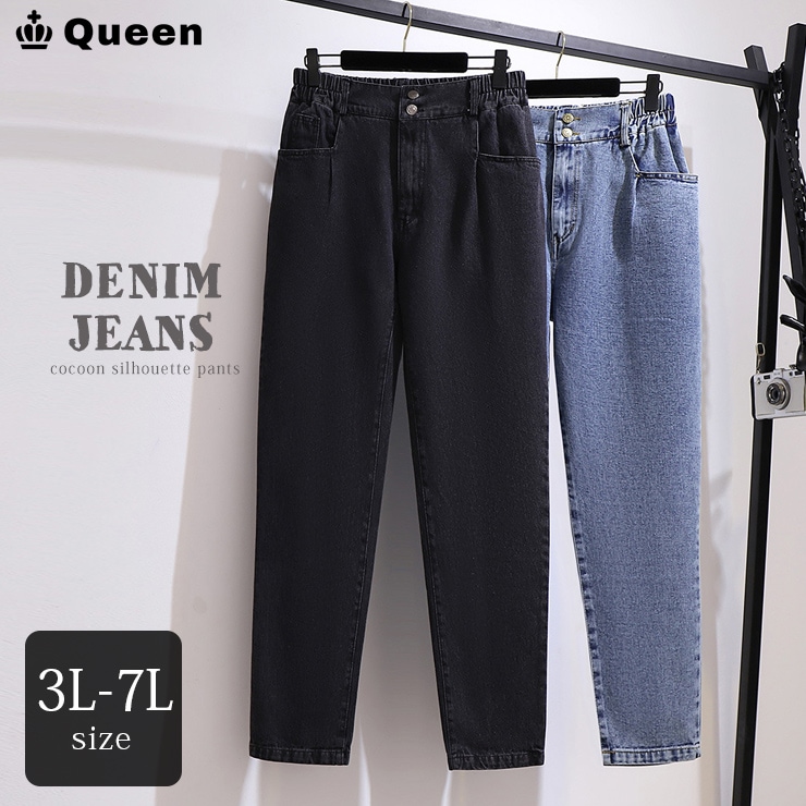 大きいサイズ レディース デニムパンツ テーパード ジーンズ ウエストゴム ゆったり 3L 4L 5L 6L 7L 秋冬 (616...