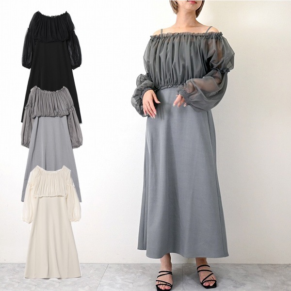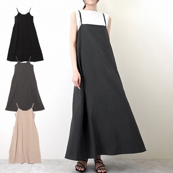 リネンタッチ×チュール2WAYブラウスセットキャミワンピース