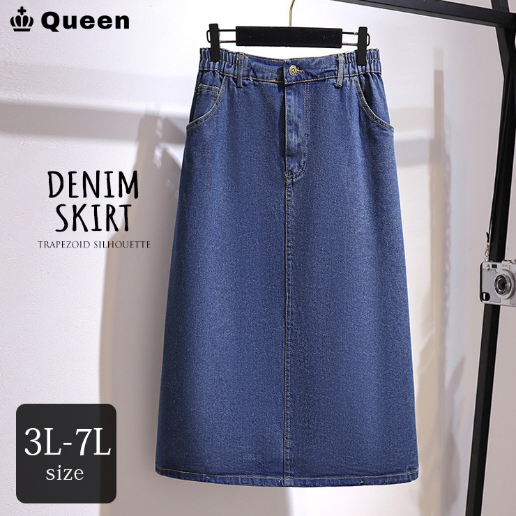 大きいサイズ レディース デニムスカート ミモレ丈 ウエストゴム 台形スカート バックスリット 3L 4L 5L 6L 7L 秋冬...