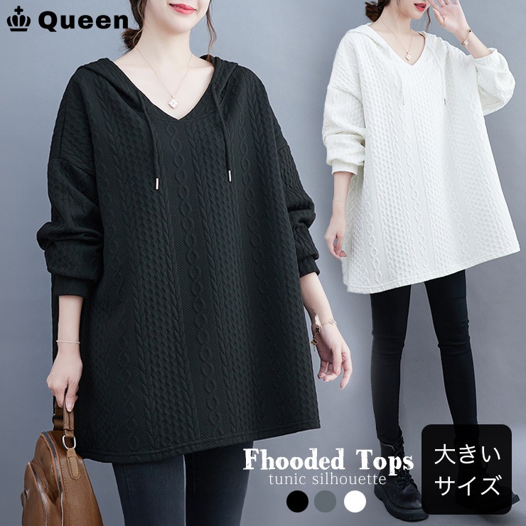 大きいサイズ レディース トップス パーカー 長袖 フーディー 無地 オーバーサイズ 秋 冬 (2099)