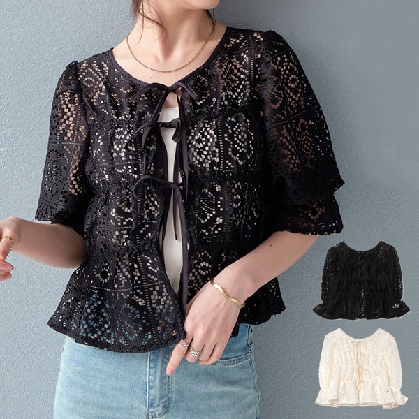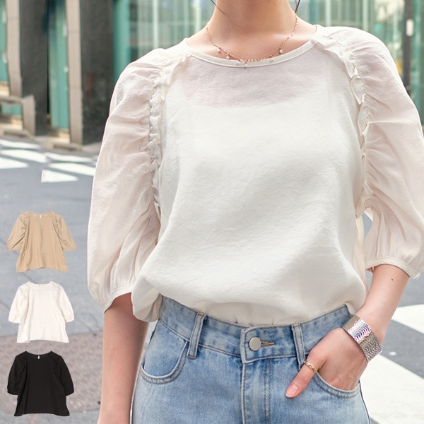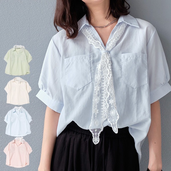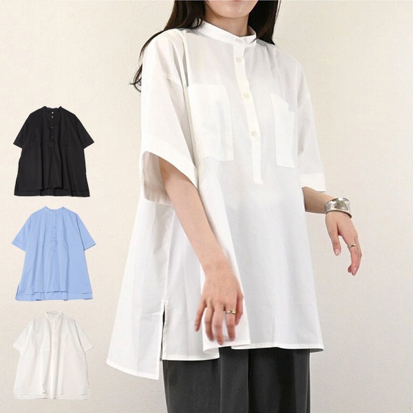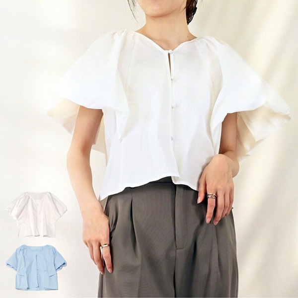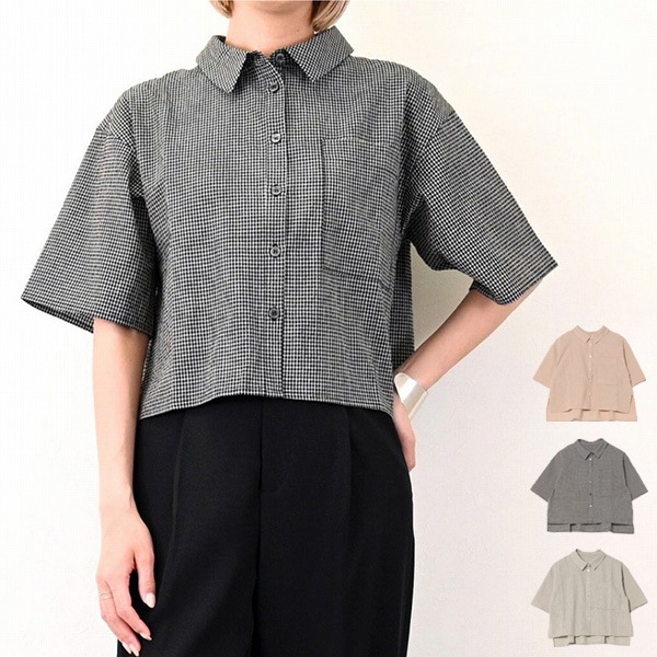 ブロード×ハーフスリーブドロストクロップドシャツ