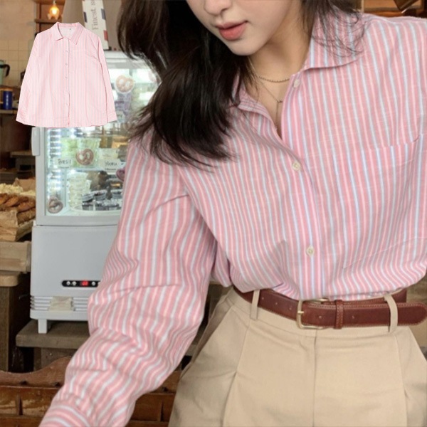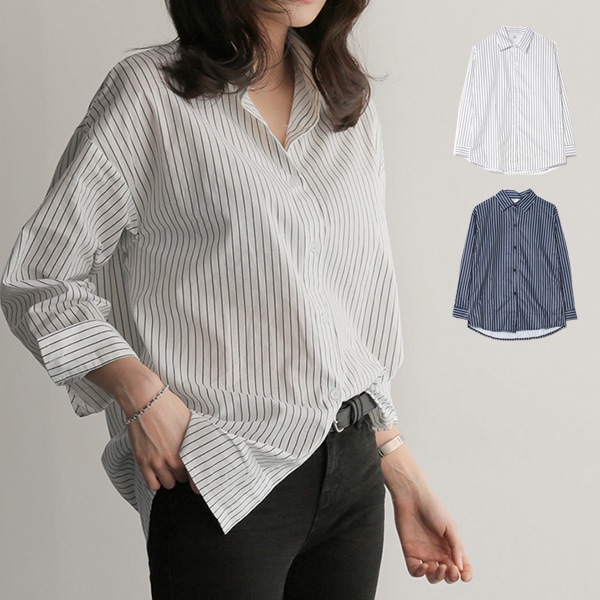 先染めストライプハーフスリーブドロストクロップドシャツ