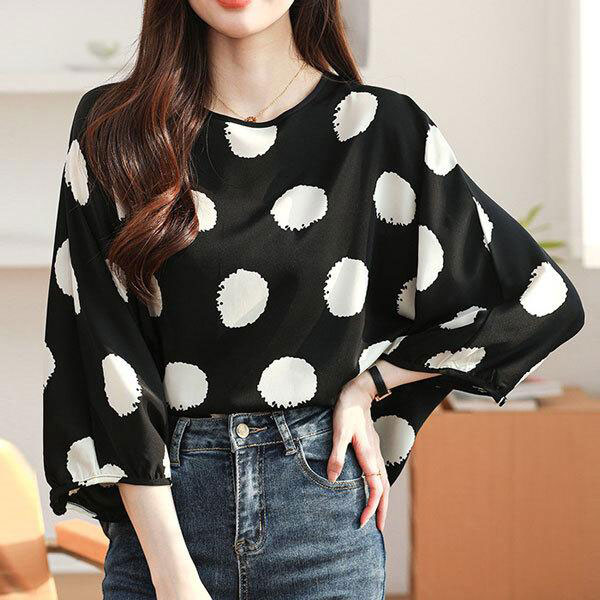 レディース ドット柄 ドルマンスリーブシャツ ワンカラー 4サイズ ポリエステル素材 きちんと感 リラックス 柔らかな肌触り シワ...