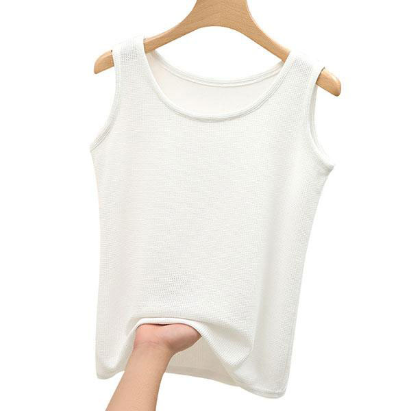 レディース ワッフル Uネック ラウンドネック タンクトップ ノースリーブ インナー トップス 通気性 リラックス カジュアル 柔...