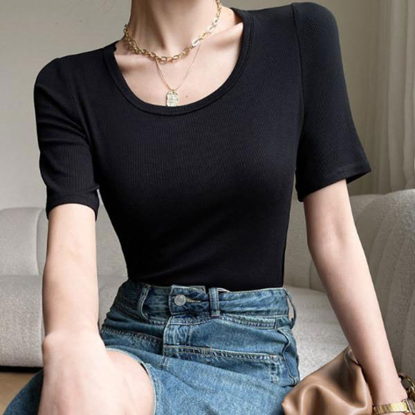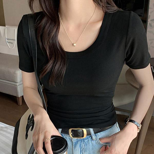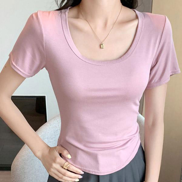 レディース Uネック Tシャツ 半袖 シャツ インナー トップス ラウンドネック デコルテ 伸縮性 動きやすい エレガント シンプ...