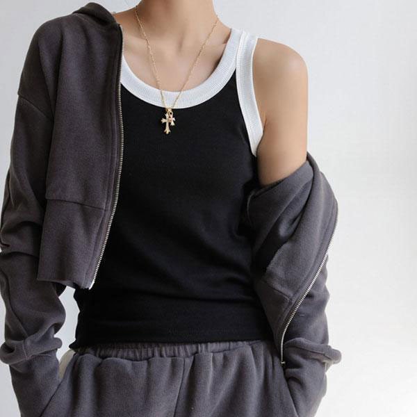 レディース バイカラー ニット タンクトップ キャミソール Uネック 吸湿性 ストレッチ性 フィット カジュアル シルエット ベー...