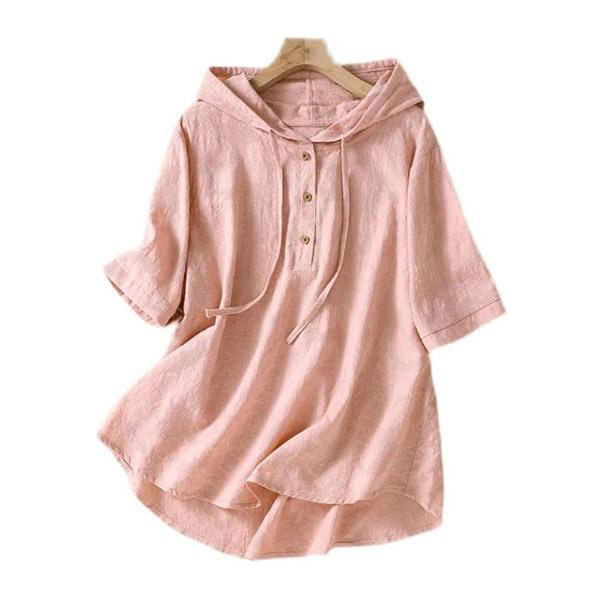 レディース ジャガード織り フーディーシャツ フード付き 半袖 パーカー ブラウス コットン リネン 通気性 日焼け防止 冷房対策...
