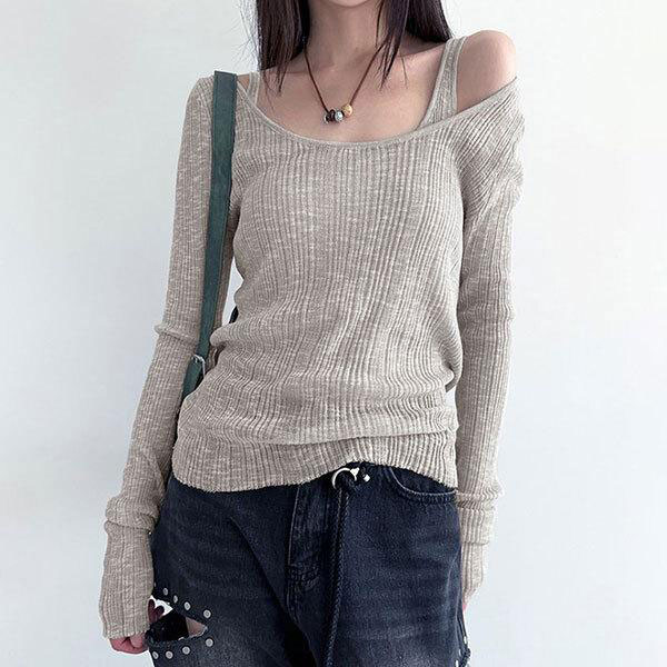 レディース 長袖リブニット&タンクトップ 3サイズ 2カラー ポリエステル素材 セパレート式 ルーズ ガーリー スリムフィット 長...