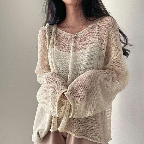 レディース メッシュニット 長袖 透け感 薄手 ゆったり ローゲージ トップス ルーズニット サマーニット 日焼け止め 冷房対策 ...