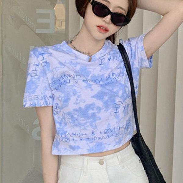 レディース タイダイ柄 クロップドシャツ Tシャツ 半袖 トップス へそ出し ウエスト ショート丈 ストリート カジュアル 鮮やか...