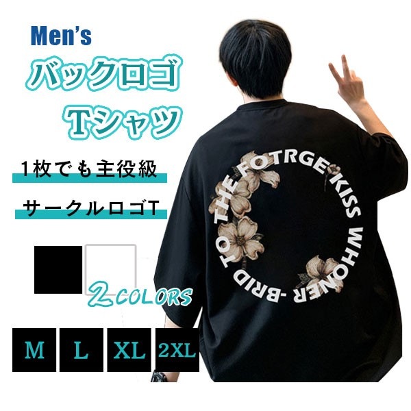 メンズ バックロゴ 五分袖 Tシャツ サークル フラワー 半袖 英字 花柄 通気性 快適 着心地 お洒落 春 夏
